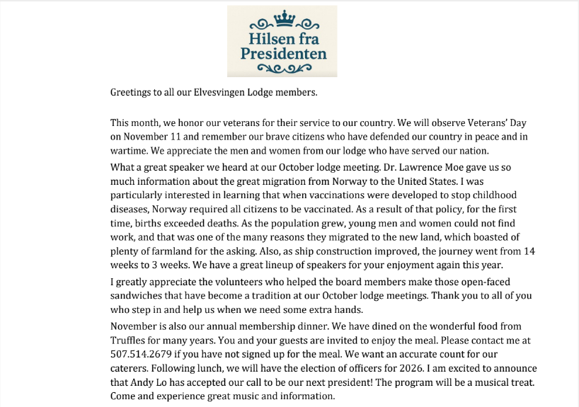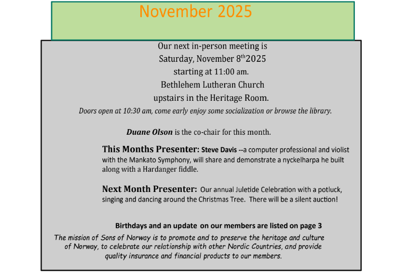 © 2003 - 2025 Mankato Sons of Norway, Elvesvingen Chapter 1-582. | All Rights Reserved.