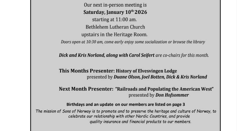© 2003 - 2026 Mankato Sons of Norway, Elvesvingen Chapter 1-582. | All Rights Reserved.